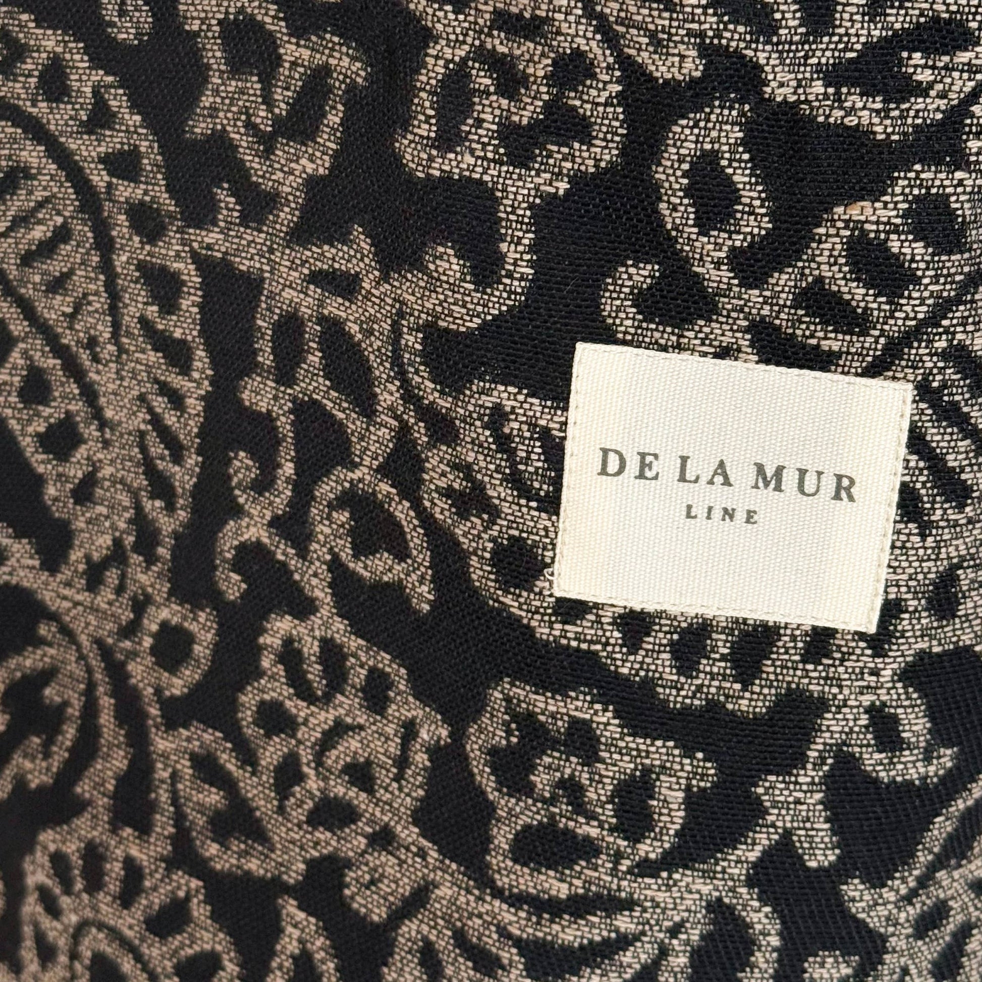 Large tote bag with shoulder straps. Made from thick jacquard fabric with a floral pattern in gray on a black background.
