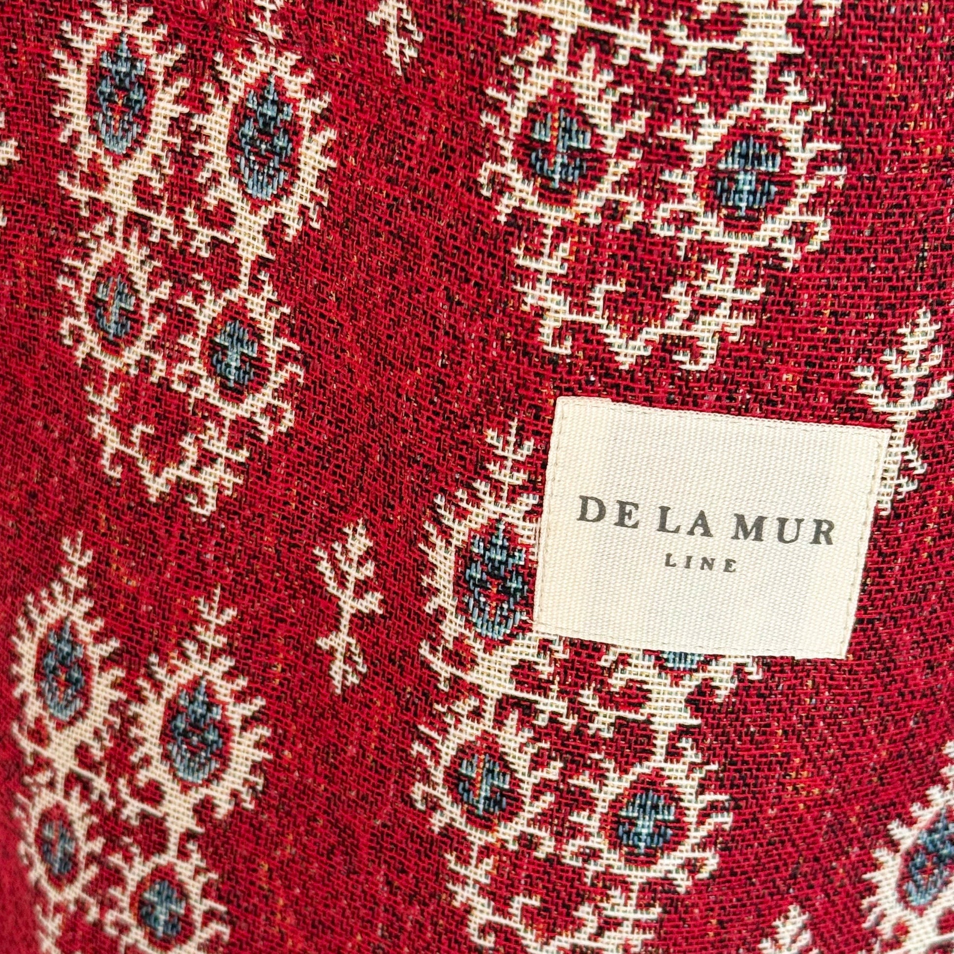 Tote bag with shoulder straps. Made from thick jacquard fabric with a geometric print in garnet tones.