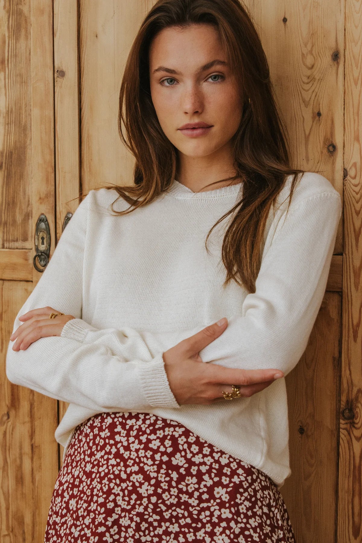 Straight-cut knit sweater with a ribbed round neckline and long sleeves with ribbed cuffs.