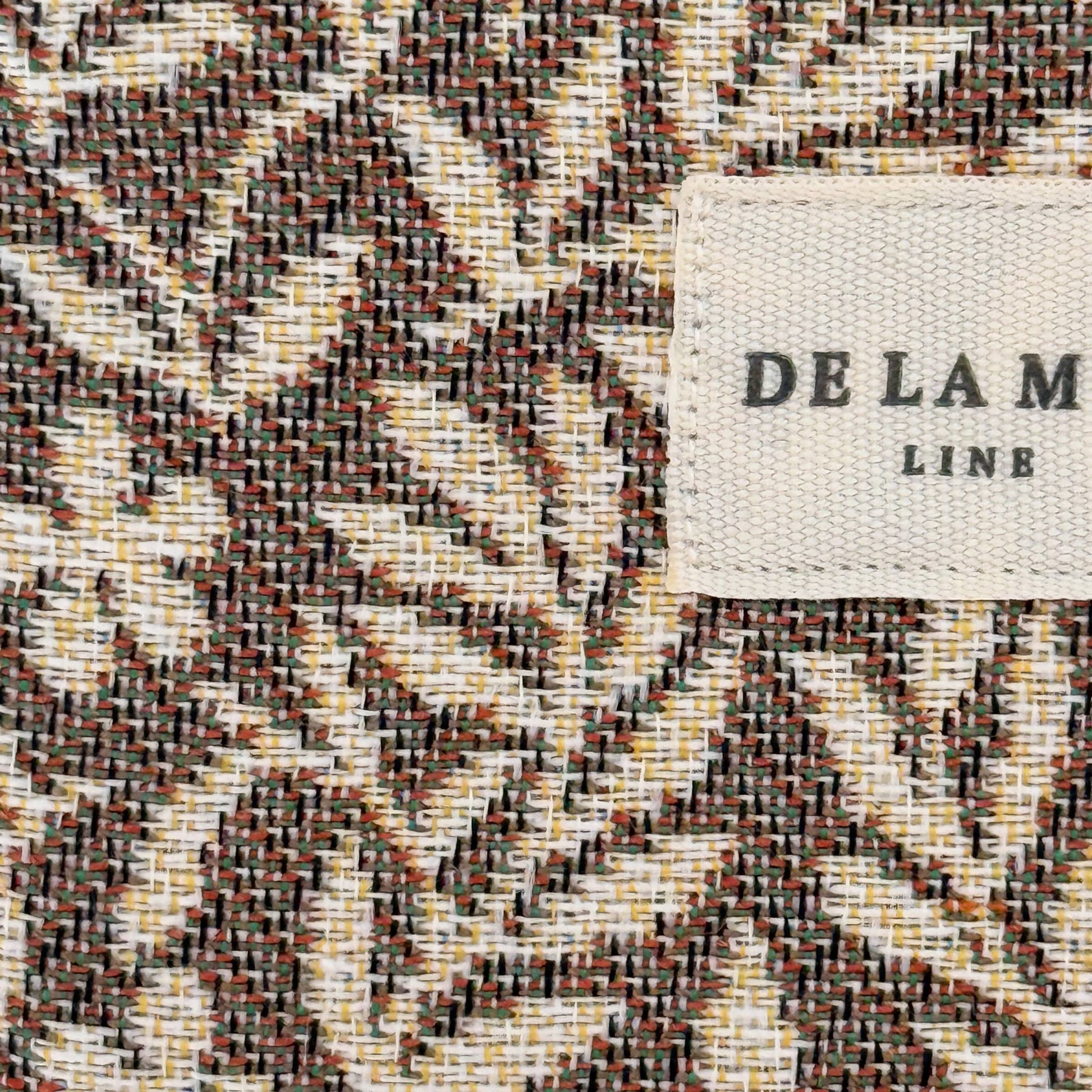 Crossbody mobile phone pouch with a top zipper and a long beige cotton cord. Made from thick jacquard fabric with a floral print in raw tone on a taupe background. Each item may have slight variations in the pattern depending on where the fabric was cut. Lined with thick gray fabric on the inside.