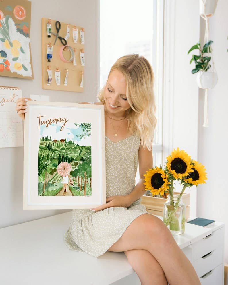 This sweet Tuscany poster print is sure to bring a little warmth to the traveler's space!